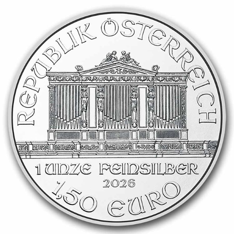 Η μια πλευρά του αργυρού νομίσματος φέρει, όπως και το χρυσό νόμισμα, τα όργανα της διάσημης ορχήστρας. Η άλλη πλευρά του νομίσματος απεικονίζει το μεγάλο όργανο του Golden Hall της Βιέννης όπου γίνεται η ετήσια συναυλία της Πρωτοχρονιάς.