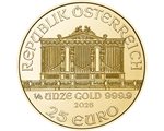 Το χρυσό νόμισμα Austrian Philharmonic 1/4 ουγγιάς είναι κατασκευασμένο από 99,99% καθαρό χρυσό 24 καρατίων. Κάθε νόμισμα είναι εγγυημένο ως προς το βάρος και την καθαρότητα του χρυσού από την αυστριακή κυβέρνηση. Η μια πλευρά του νομίσματος φέρει επιλεγμένα μουσικά όργανα της διάσημης ορχήστρας της Φιλαρμονικής της Βιέννης. Η άλλη πλευρά του νομίσματος απεικονίζει το μεγάλο όργανο του Golden Hall της Βιέννης όπου γίνεται η ετήσια συναυλία της Πρωτοχρονιάς.